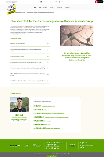 BBRC is the research center of the Pasqual Maragall Foundation, dedicated to the prevention of Alzheimer’s disease and the study of cognitive functions affected by healthy and pathological aging. Since its creation in 2012, BBRC has been committed to cutting-edge research to detect the disease early and develop prevention programs that delay or stop the onset of symptoms.
