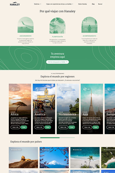 We developed the new WordPress website for Hanaley Travel, an agency specialized in tailor-made trips and exclusive experiences. The website features a carefully designed, visually attractive layout full of dynamic components such as sliders, carousels, and galleries.