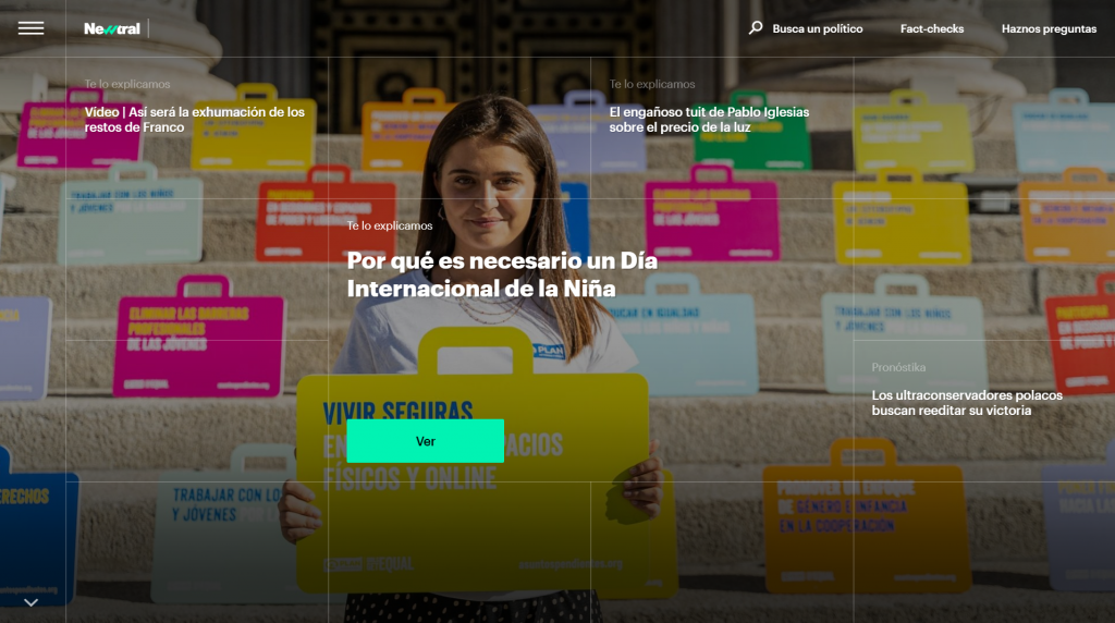 Newtral es la startup de contenido audiovisual, de la periodista Ana Pastor. Una startup pionera en el periodismo de investigación a través del fact-checking (verificación de datos) que también tiene su vertiente de productora de programas televisivos, algunos de tan éxito como “El Objetivo” de la Sexta televisión.