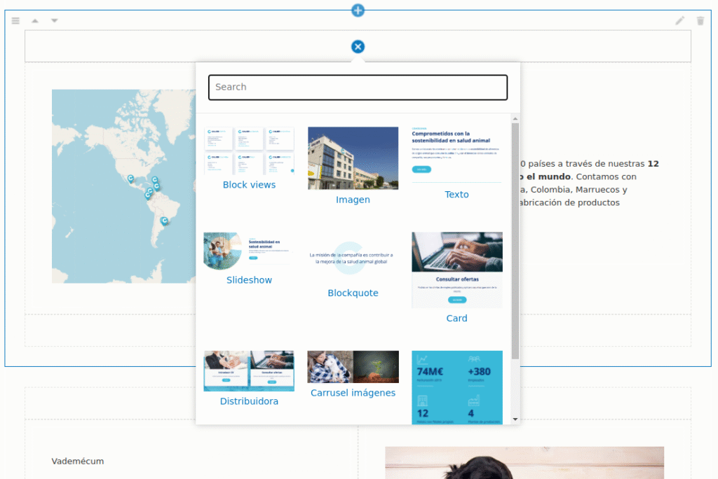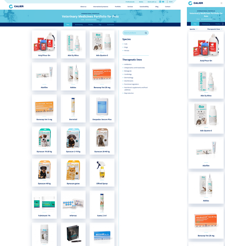 Una sección muy importante para la web era poder mostrar el vademecum de productos de calier. Para este cometido creamos un tipo de contenido producto y unas vistas con filtros.